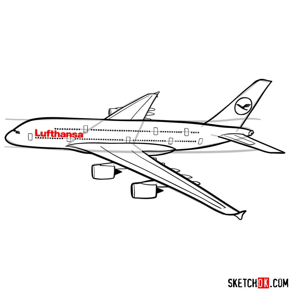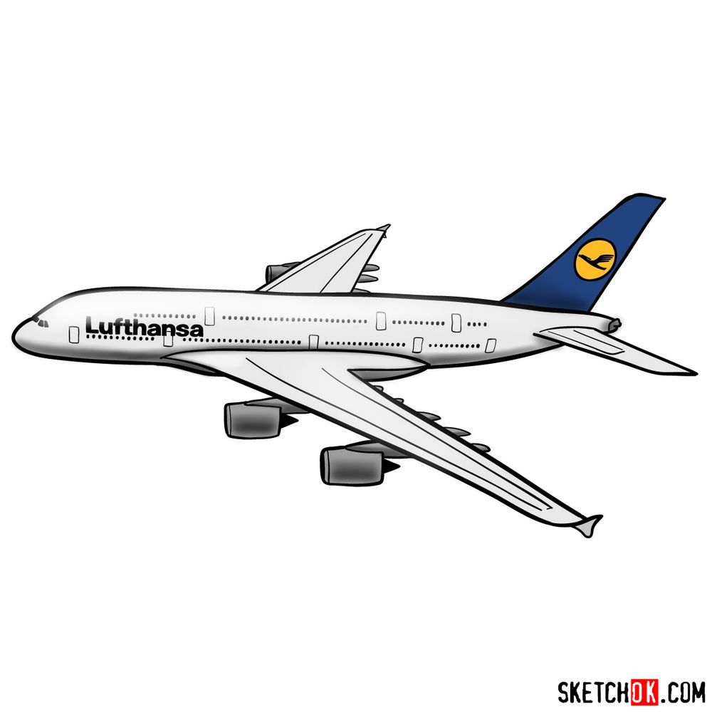 How to draw Airbus A380 (Lufthansa) side view Sketchok easy drawing