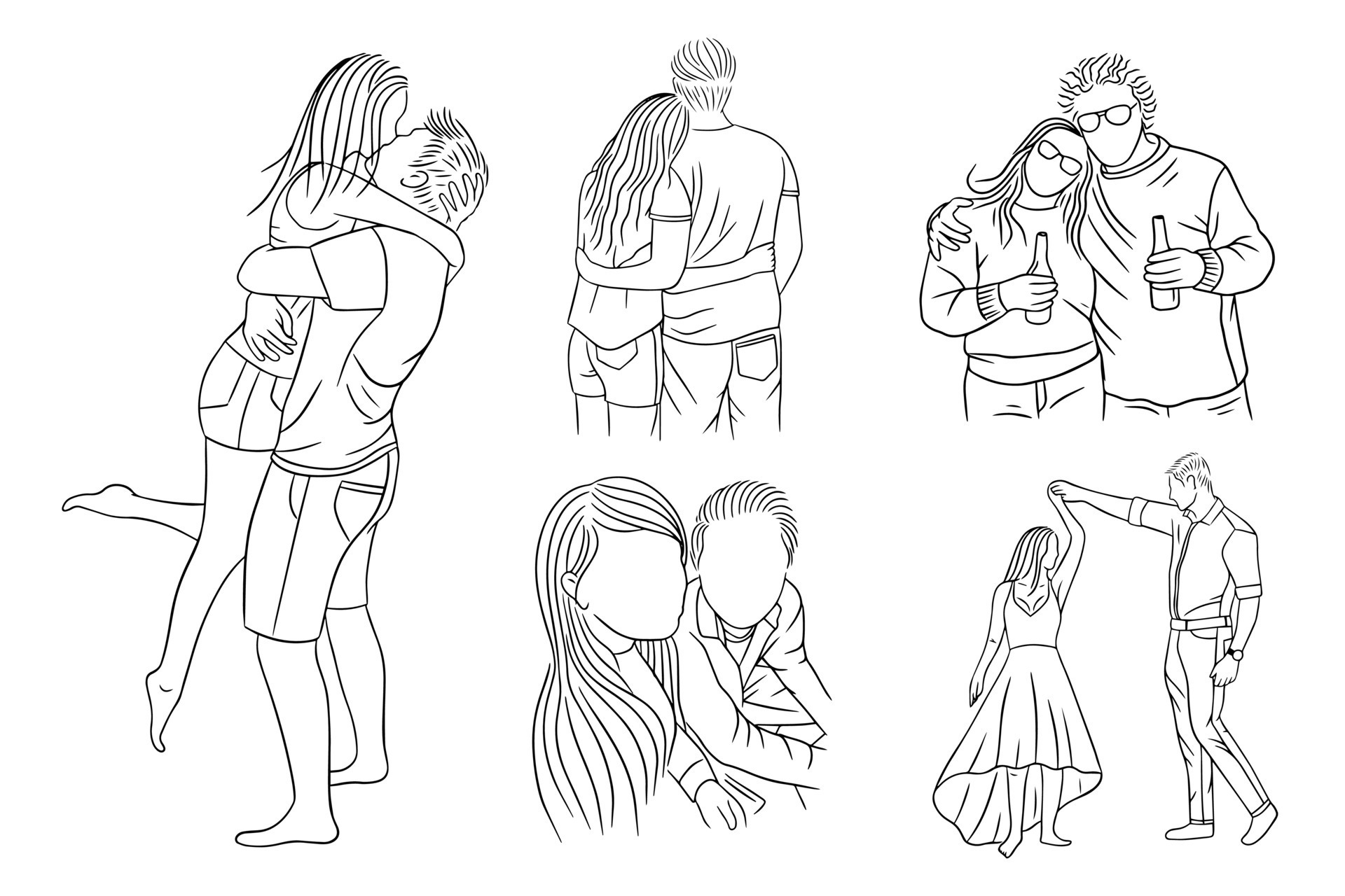 Set Bundle Line Art Drawing Simple Couple Love Boy and Girl Kiss Hand