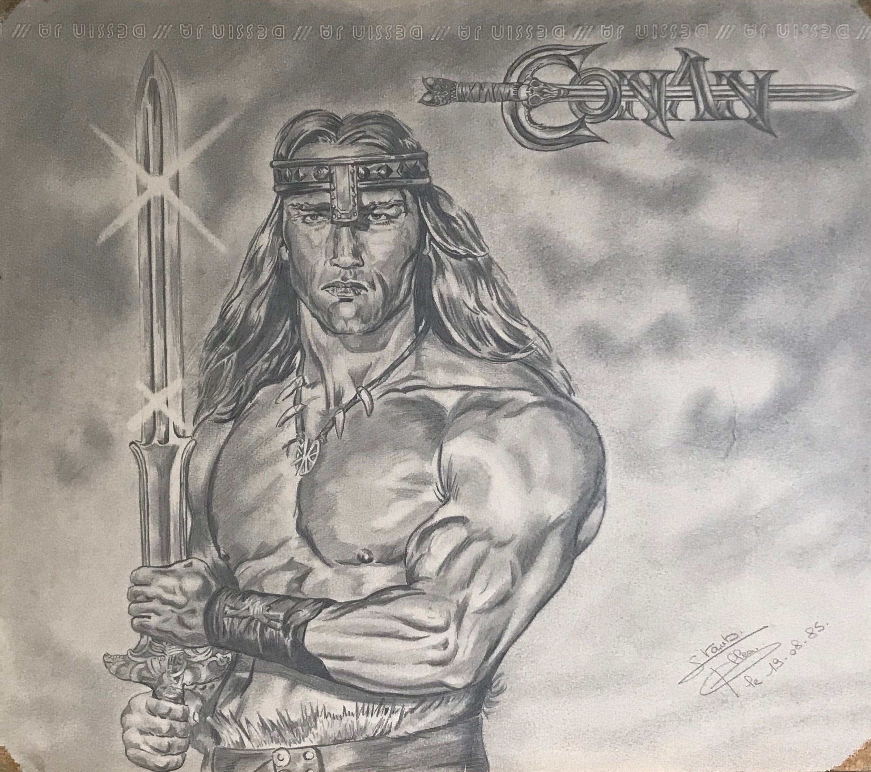 Drawing of Conan the Barbarian Made in Pencil Etsy