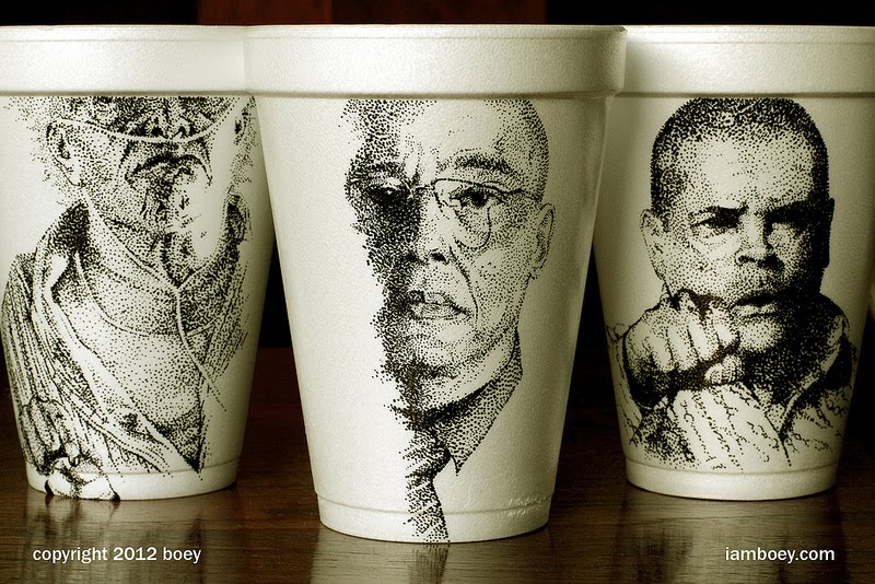 Amazingly Detailed Illustrations Drawn on Foam Coffee Cups