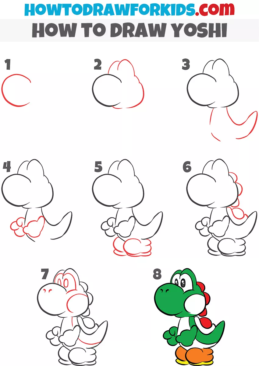 How to Draw Yoshi Easy Drawing Tutorial For Kids Easy Disney Drawings