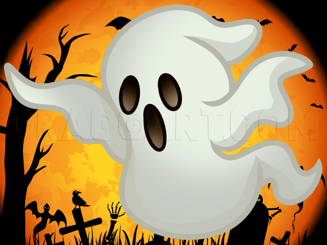 How To Draw A Halloween Ghost Easy, Step by Step, Drawing Guide, by