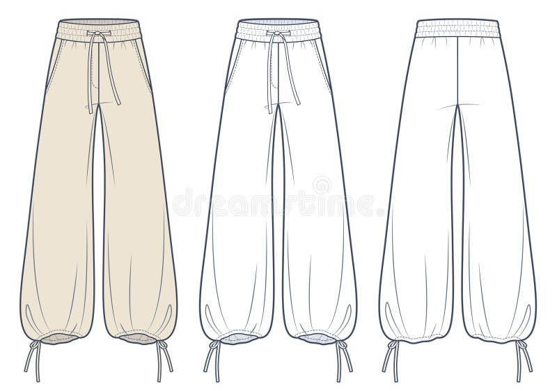 Baggy Pants Fashion Flat Technical Drawing Template. Jogger Pants