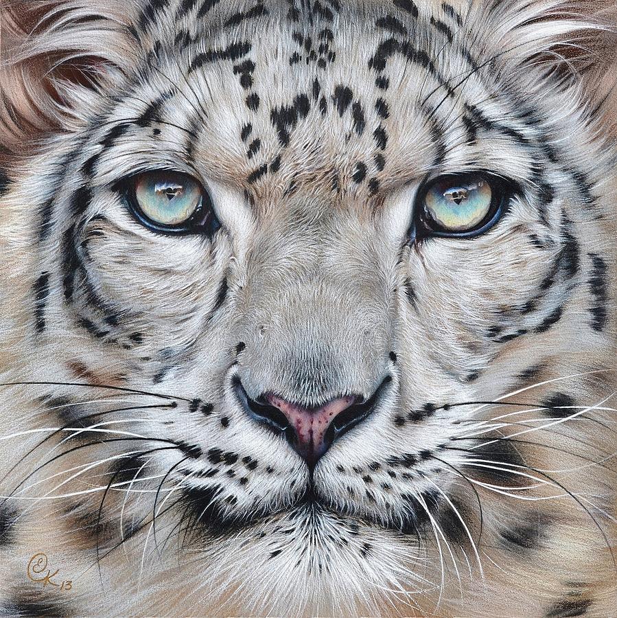 Faces Of The Wild Snow Leopard Drawing by Elena Kolotusha