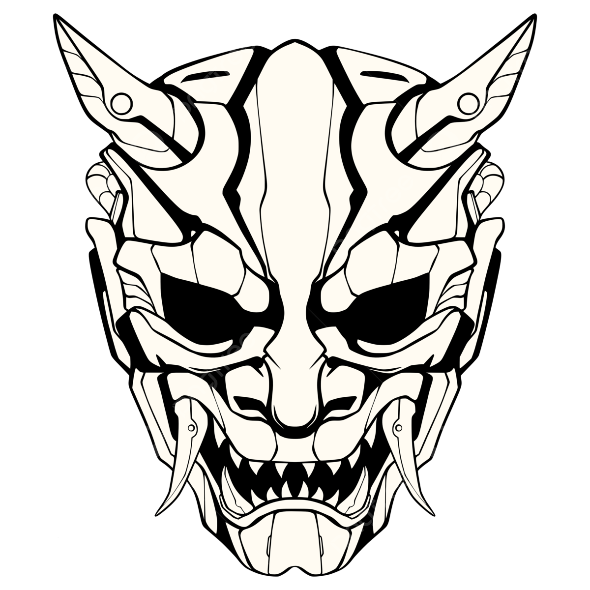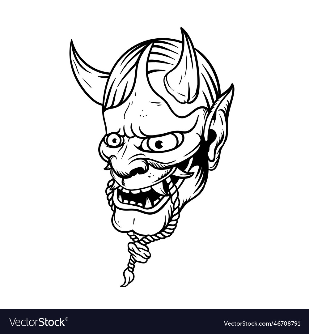 Oni Mask Line Art Style, Mask Drawing, Oni Mask, Oni Mask Illustration