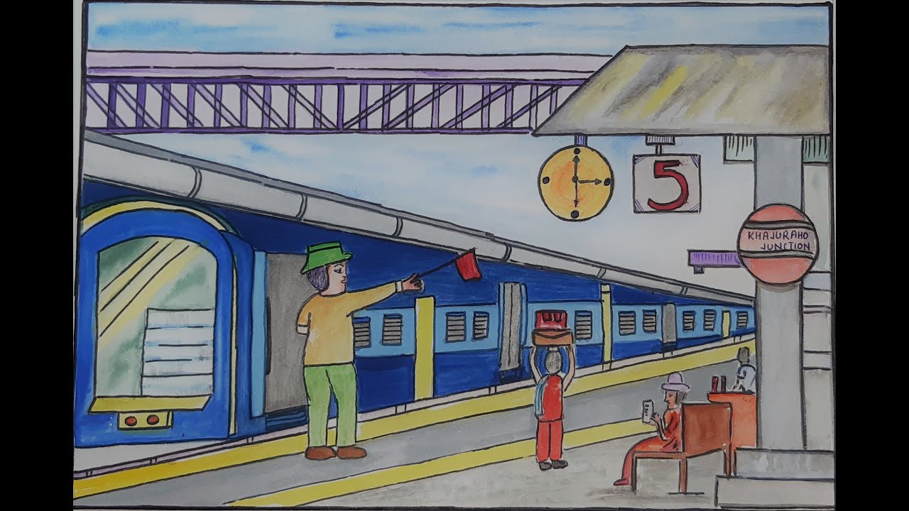 Railway Station Drawing Railway Station Drawing With Watercolor