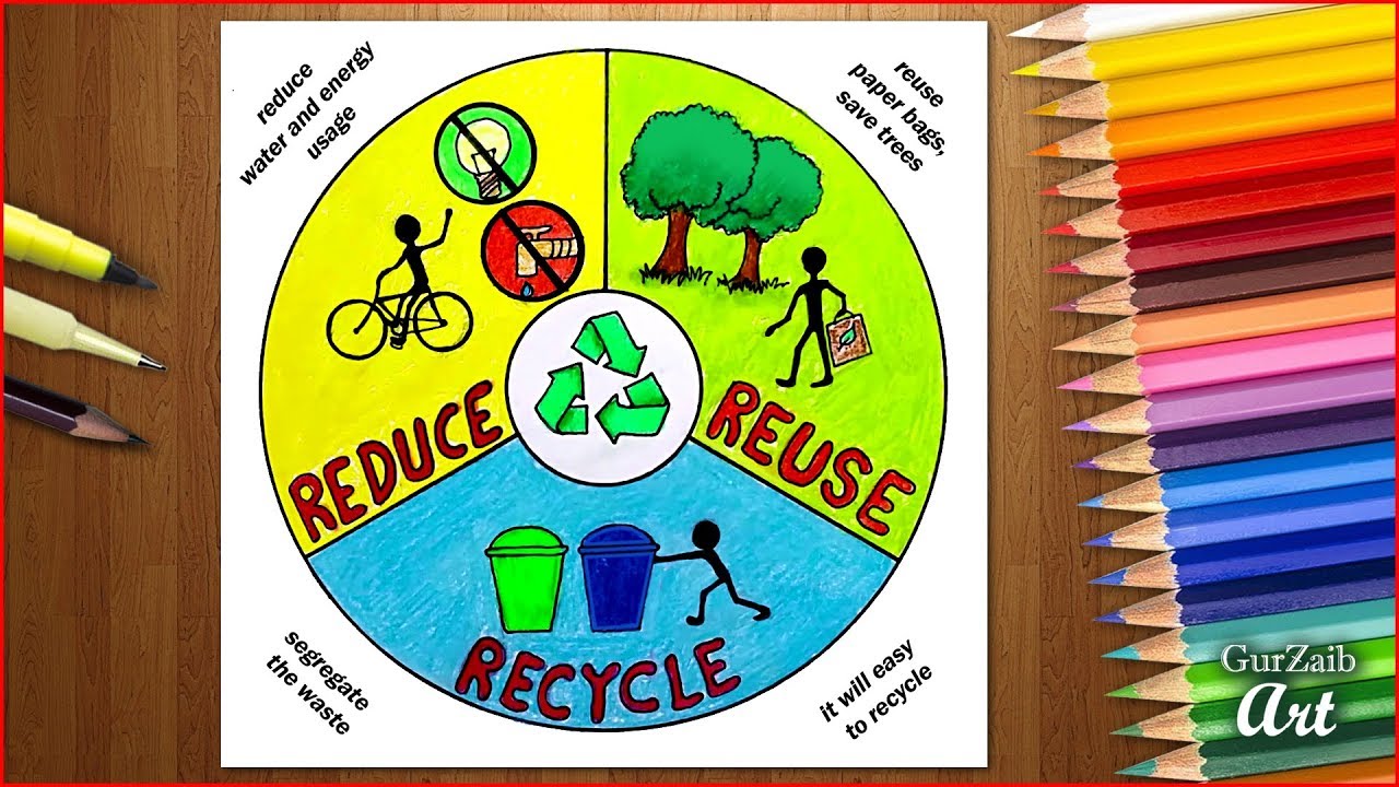 How to draw Reduce Reuse Recycle poster chart drawing for beginners