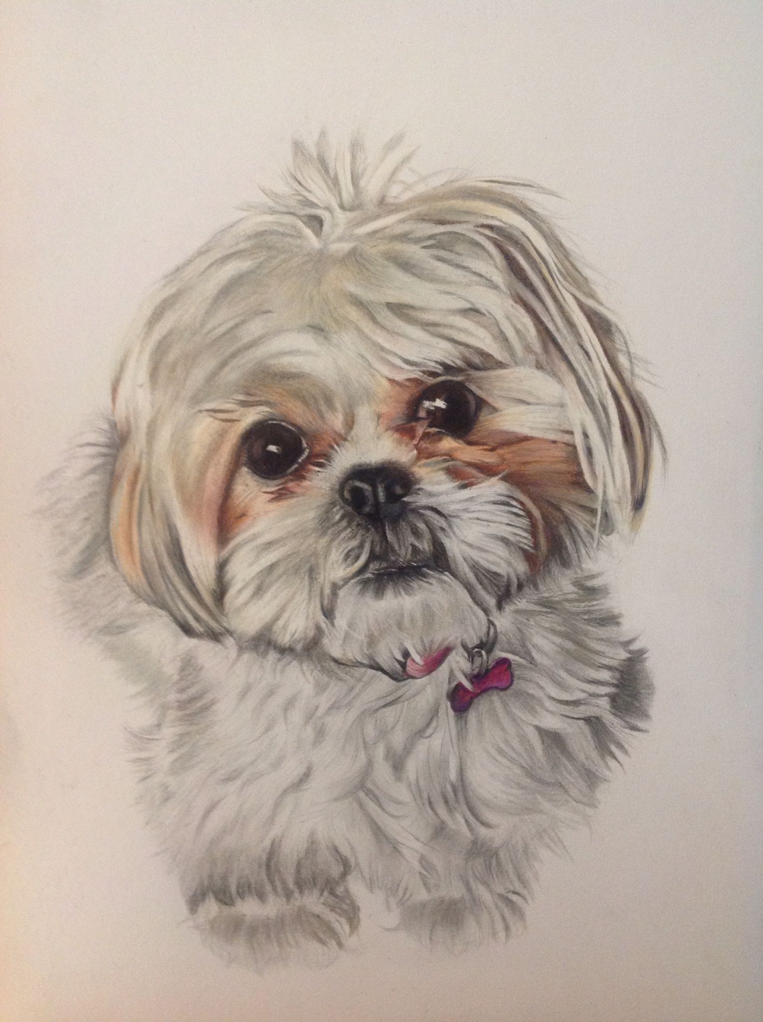 Detailed Shih Tzu Portrait Drawing by Kate Sumners