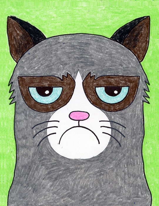 Easy How to Draw Grumpy Cat Tutorial, Grumpy Cat Coloring Page