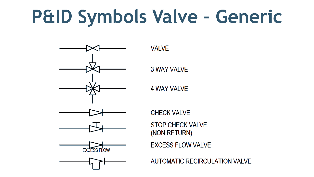 Valve Drawing Symbols - Web provide provide valves of the type and size as indicated on the drawings and details. Videos you watch may be added to the tv's watch history and influence tv recommendations. Start a free trial and see for yourself. In such cases, information concerning the valve type may be conveyed by the component Web proficient interpretation of valve symbols enhances project efficiency, reducing errors and promoting the seamless integration of valves into complex industrial processes. Get tailored plant training courses. Figure 1 shows the symbols that depict the major valve types. We have two main types of valve symbols used in the p&id. Downloadable pdf of valve, actuator and other popular p&id symbols. A comprehensive guide to understanding different types is meticulously crafted to serve as an indispensable resource for industry professionals seeking to navigate the complexities of valve identification and application with unwavering confidence. Web proficient interpretation of valve symbols enhances project efficiency, reducing errors and promoting the seamless integration of valves into complex industrial processes. Then two vertical lines connect the ends to create an enclosed shape. The valve symbols with a modifier will tell you about the exact valve type used in the pipeline. Downloadable pdf of valve, actuator and other popular p&id symbols. Valves are technically fittings, but are usually discussed as a separate category. Web its symbol looks like the outline of a bowtie with two straight lines crossing each other to form an “x”. • each type of valve has been designed to meet specific needs. Sign up for free and use lucidchart's p&id shape library! Valve symbols are used to signify the pressure, flow and direction of fluids through a valve. In such cases, information concerning the valve type may be conveyed by the component Provide brass valve tags & chains for t\ൈe purpose of identification. The valve symbols with a modifier will tell you about the exact valve type used in the pipeline. Then two vertical lines connect the ends to create an enclosed shape. Web in this article, we highlight some of the most common p&id valve symbols, process lines, end connections and other vital components. The valve symbols can show you the type, how they operate, and more. Here is a list of symbols for various types of valves used in process industry. These symbols are fully explained in the usa standard drafting manual (ref. 1.1.1pictorial symbols are very useful for showing the interconnection of components. Web these valve symbols convey essential information about the valve type, function, and operation, facilitating effective communication among engineers, designers, and technicians. Indicators like a vertical line might suggest a gate valve symbol or a small dark circle suggesting a globe valve symbol. Downloadable pdf of valve, actuator and other popular p&id symbols. Valve symbols are used to signify the pressure, flow and direction of fluids through a valve. Web learn about types of valve symbols used in p&id and iso drawing. So, to understand a system shown on a process flow diagram (fd) or a piping and instrument diagram (p&id), you must. This comprehensive overview delves into the world of valve symbols, providing detailed explanations and examples to empower professionals with the. Web here, we will focus on valve symbols, depicted typically as two lines (representing piping) connected to a boxy or triangular symbol that represents the valve’s type. If playback doesn't begin shortly, try restarting your device. Web a valve controls. Web proficient interpretation of valve symbols enhances project efficiency, reducing errors and promoting the seamless integration of valves into complex industrial processes. Learn the meanings and applications of various valve symbols, enhancing communication and understanding in engineering projects. Web valve symbols valves are used to control the direction, flow rate, and pressure of fluids. Web in this article, we highlight. • each type of valve has been designed to meet specific needs. Web types of symbols commonly used in drawing circuit diagrams for fluid power systems are pictorial, cutaway, and graphic. Web learn about types of valve symbols used in p&id and iso drawing. Web typical drawing symbols quick fill gas meter water meter temperature gauge pressure gauge flow switch. Web type of valve employed depends on nature of fluid, flow control required, operating pressure and temperatures as well as surround atmosphere. Such as ball valve, plug valve, refile valve, gate valve, check valve, butterfly valve. Web a piping and instrumentation diagram (p&id) is a graphic representation of a process system that includes the piping, vessels, control valves, instrumentation, and. It should be noted that globe and gate valves will often be depicted by the same valve symbol. Pneumatic valve types and symbols. A comprehensive guide to understanding different types is meticulously crafted to serve as an indispensable resource for industry professionals seeking to navigate the complexities of valve identification and application with unwavering confidence. Provide brass valve tags &. The ball valve symbol is represented by a plain circle drawn straight over the centre where the two triangles meet. The valve symbols can show you the type, how they operate, and more. Web in this article, we highlight some of the most common p&id valve symbols, process lines, end connections and other vital components. Web in each process and. To avoid this, cancel and sign in to youtube on your computer. Web a piping and instrumentation diagram (p&id) is a graphic representation of a process system that includes the piping, vessels, control valves, instrumentation, and other process components and equipment in the system. The valve symbols with a modifier will tell you about the exact valve type used in. We have two main types of valve symbo