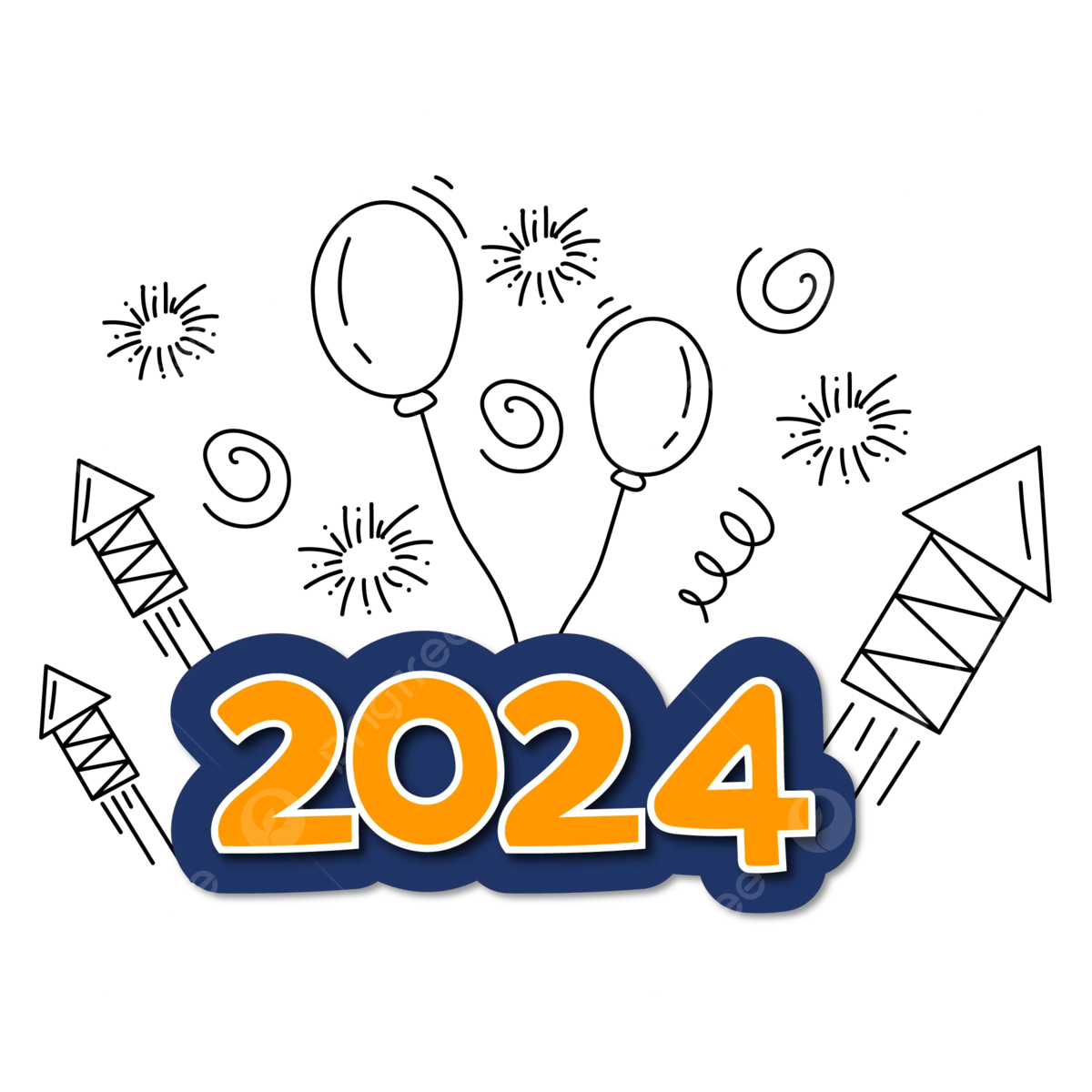 2024 Happy New Year Design With Doodle 01 Vector, Ear Drawing, Happy