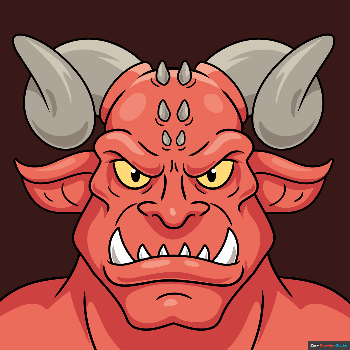 How To Draw A Demon Face, Demon Face, Step by Step, Drawing Guide, by