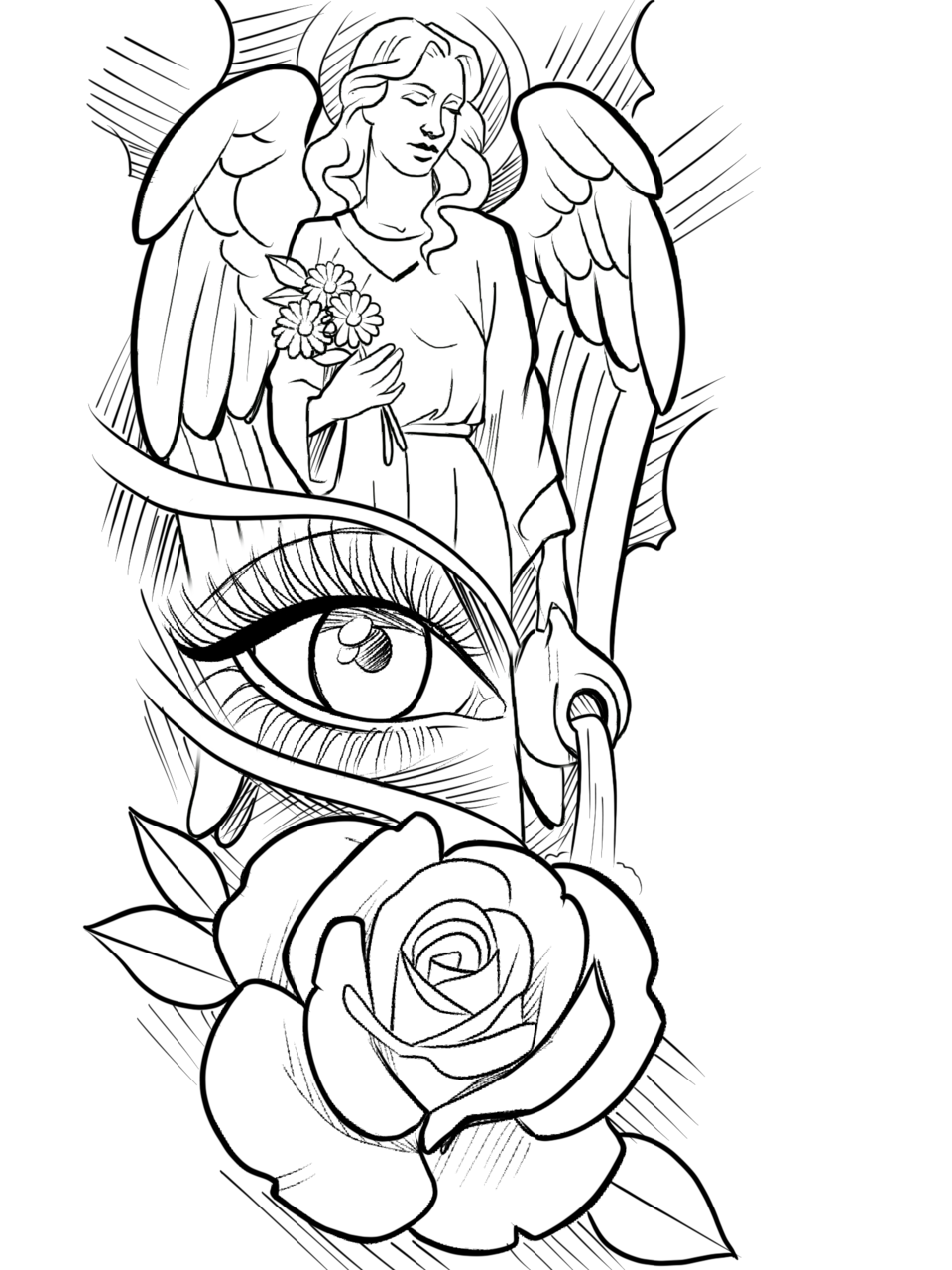 Line Drawing Tattoo Sleeve Outline Perangkat Sekolah