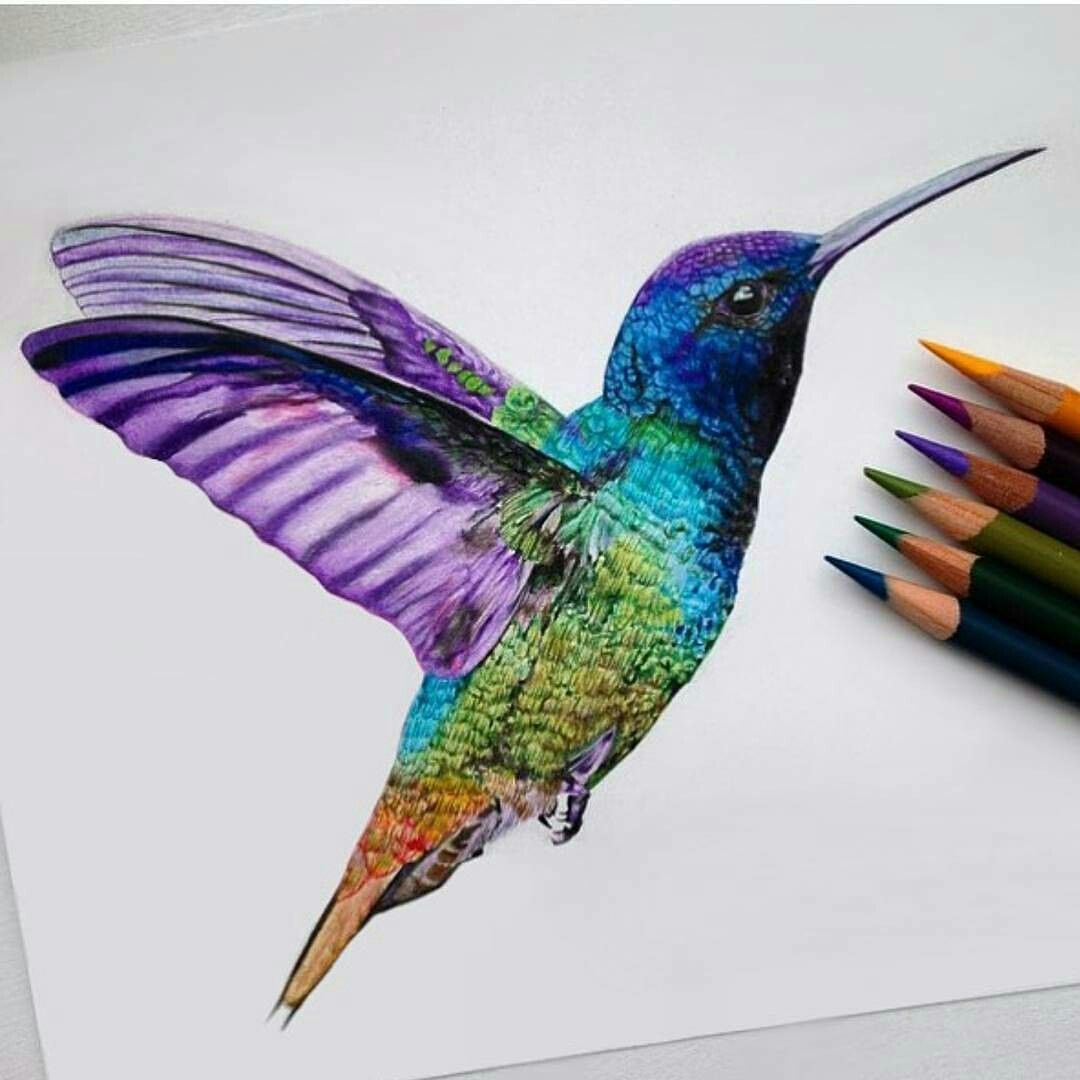 Hummingbird Drawing, Pencil, Sketch, Colorful, Realistic Art Images