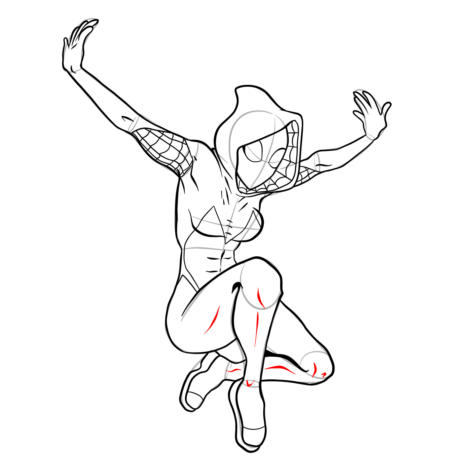 How to draw SpiderGwen in a jump SketchOk